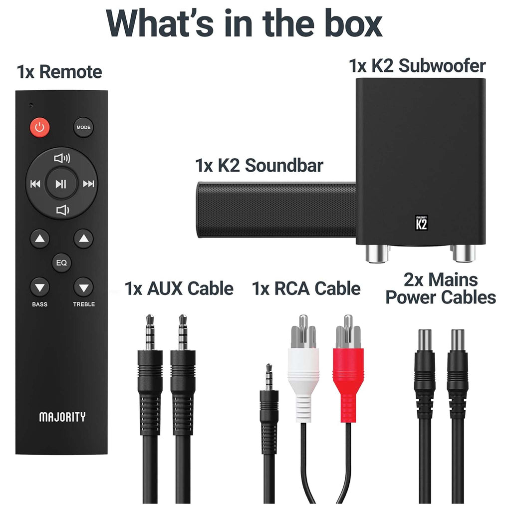 Majority K2 Soundbar -kaiutin & subwoofer 150W musta